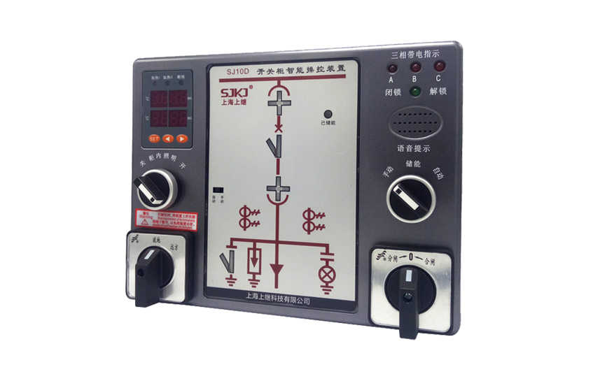 SJ10D開關柜智能操控裝置功能強大,用于3-35kV戶內開關柜,適用于中置柜、手車柜、固定柜、環網柜等多種開關柜,可取代傳統開關柜的一次回路模擬、帶電顯示器、自動加熱除濕控制器、斷路器分合閘按鈕等元件。具備了斷路器分合閘狀態指示、儲能指示、接地開關指示、手車位置指示、智能語言防誤提示、高壓帶電顯示、溫濕度數字顯示、柜內照明及RS485通訊接口等多項功能。